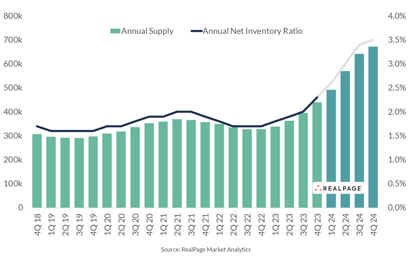 The leasing environment operators were in when all those units were approved is looking very different now, with occupancy and rent growth at much more regulated levels, and demand just getting back on track after falling off notably.