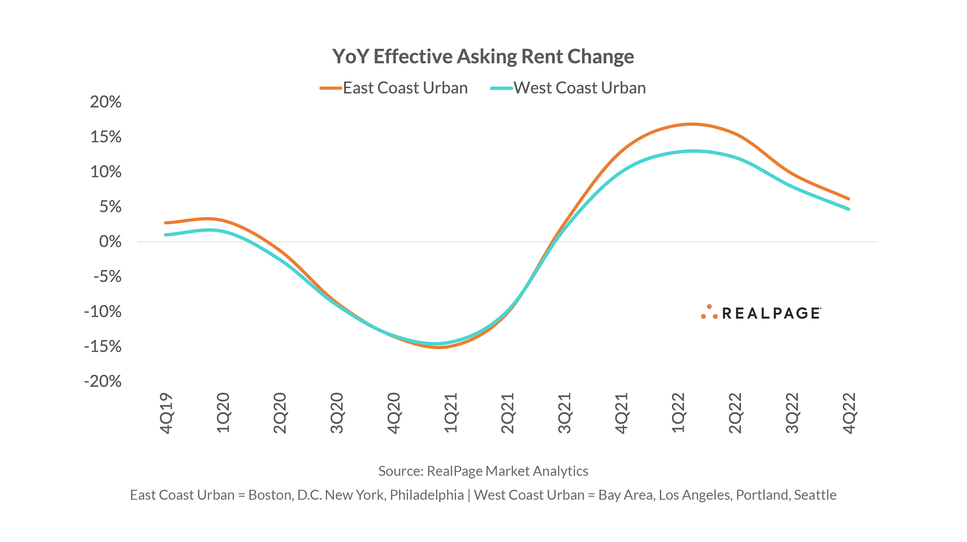 One of the more noteworthy developments in 2022 trends is that – with subsiding demand – rent growth began to moderate. While moderation is effectively ubiquitous across the nation, some differentiation is beginning to emerge across East Coast urban cores versus that of West Coast urban cores.