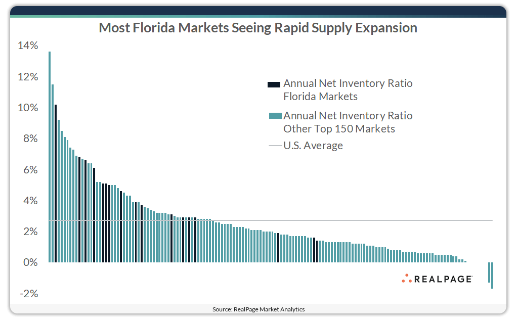 It's no surprise that elevated supply volumes are holding back rent growth in Florida in recent years.