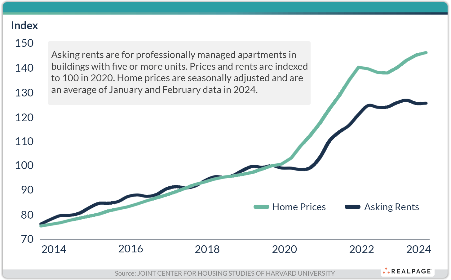 The quarterly report, which utilized data from RealPage Market Analytics, among other sources, emphasized that apartment rents and for-sale housing prices remained elevated in early 2024, as inventories remain historically low. While construction for both single-family homes and apartments is accelerating, deliveries are not yet coming online at a quick enough pace.