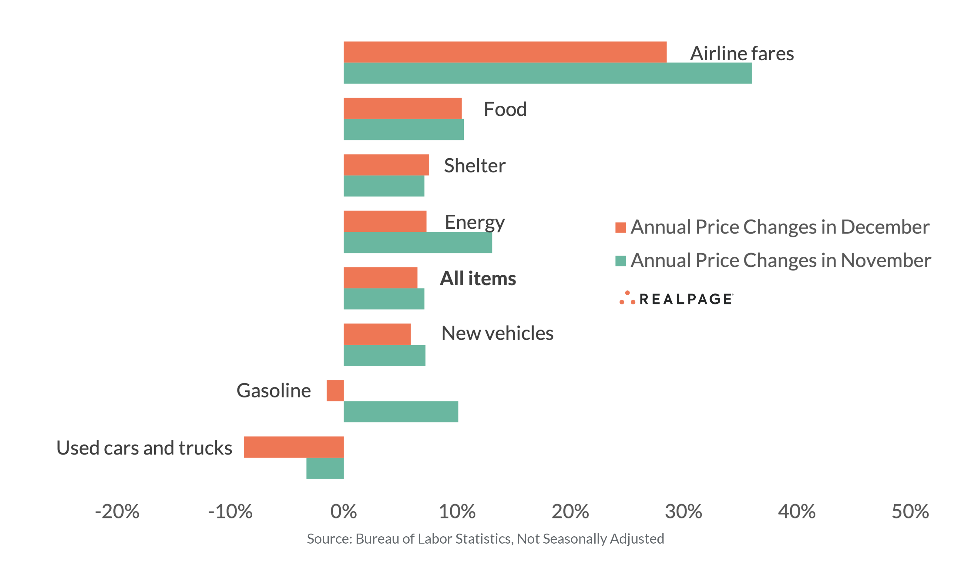 Inflation continued to slow on an annual basis in December, as rising interest rates are appearing to put a damper on price increases. For the sixth month in a row, inflation has been easing on a year-over-year basis. In December, inflation hit its lowest point in 14 months, but consumer price increases are still near 40-year highs. The Consumer Price Index (CPI) for All Urban Consumers, a measure of price changes commonly referred to as the inflation rate, was up 6.5% on an annual basis in December 2022, according to the Bureau of Labor Statistics. That was lower than the 7.1% annual increase in November and well below the 9.1% peak in June, which was the biggest year-over-year jump in prices since November 1981. Still, inflation has now remained at or near 40-year highs for 14 consecutive months, the biggest price surges since the severe economic recession of 1981-1982. Falling gas prices helped drive down inflation, with the price of gasoline dropping 9.4% from November to December, now down 1.5% from a year ago. Also contributing to the lower inflation rate, the cost of used cars and trucks plummeted 8.8% over the past year. Meanwhile, price increases in airline fares and food prices, while easing, remain stubbornly high. Shelter, which accounts for about one-third of the total CPI index, saw a 7.5% year-over-year price surge in December, the biggest annual gain in over 40 years.