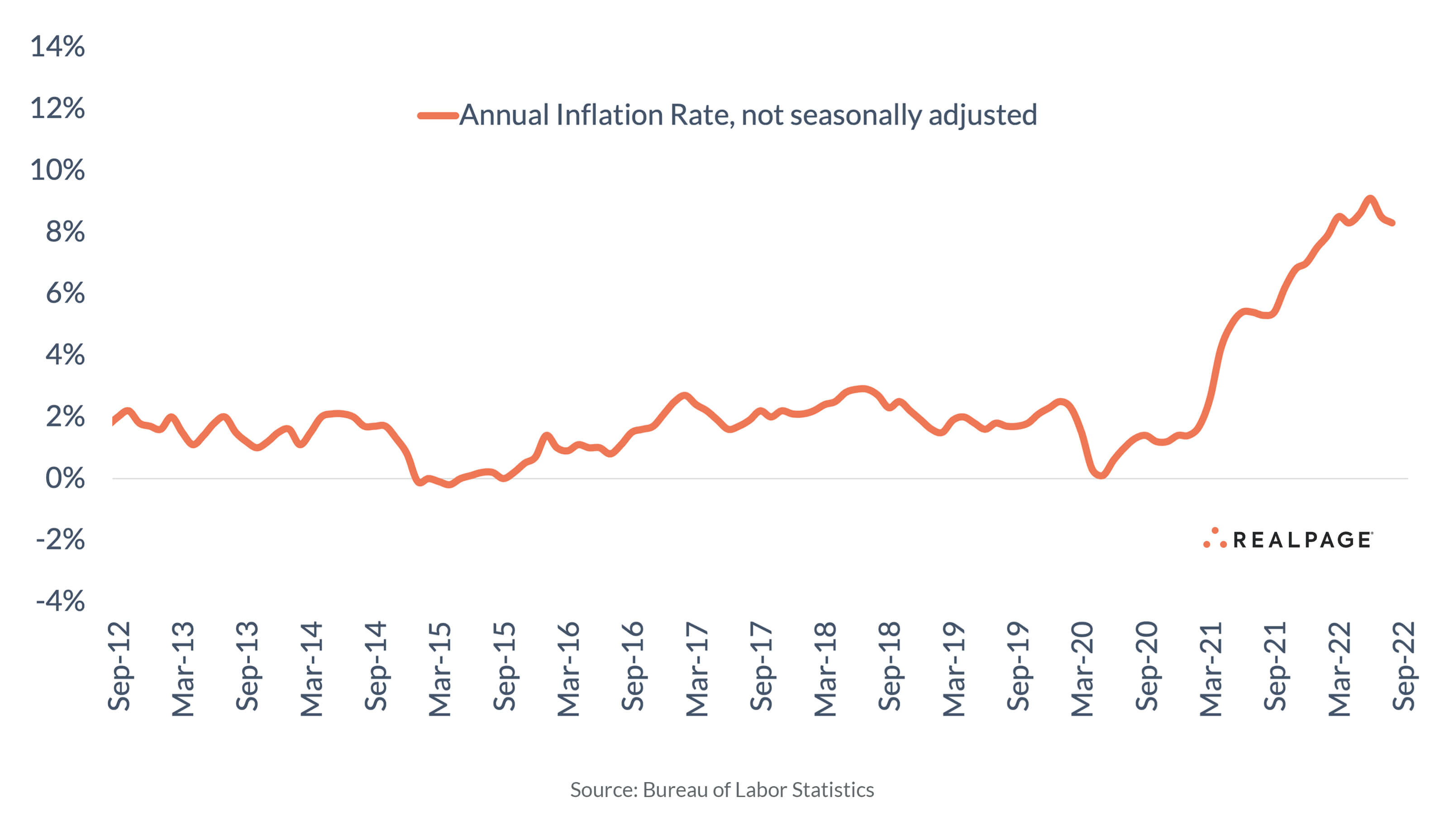 U.S. inflation eased for the third straight month in September, but price increases remain stubbornly high despite efforts by the Federal Reserve to combat inflation by raising interest rates. While inflation is at a seven-month low, it remains near 40-year highs. The Consumer Price Index (CPI) for All Urban Consumers, a measure of price changes commonly referred to as the inflation rate, was up 8.2% on an annual basis in September 2022, according to the Bureau of Labor Statistics. That was slightly lower than the 8.3% annual increase in August and below the 9.1% hike in June, which was the biggest year-over-year jump in prices since November 1981. However, September’s rate was slightly higher than the 8.1% increase forecasted by economists. Inflation has now remained at or near 40-year highs for 11 consecutive months, the biggest price surges since the severe economic recession of 1981-1982. The most recent increase in inflation was broad-based. Energy prices were up 19.8% in the year-ending September, with gasoline prices 18.2% higher than a year ago, but both of those measures were the lowest since early 2021. The cost of shelter rose 6.6% over the past year, the largest 12-month increase since August 1982. Food prices climbed 11.2% on an annual basis, down from 11.4% a month earlier, but still one of the largest 12-month increases since May 1979. The price of new vehicles was up 9.4% in the year-ending September, the smallest 12-month increase in over a year. The cost of used cars and trucks climbed 7.2% over the past 12 months, though that was a vast improvement from the roughly 20% to 40% increases from April 2021 to April 2022. Additionally, the cost of airline fares was up 27.7% year-over-year in August, the largest 12-month increase in over four decades.