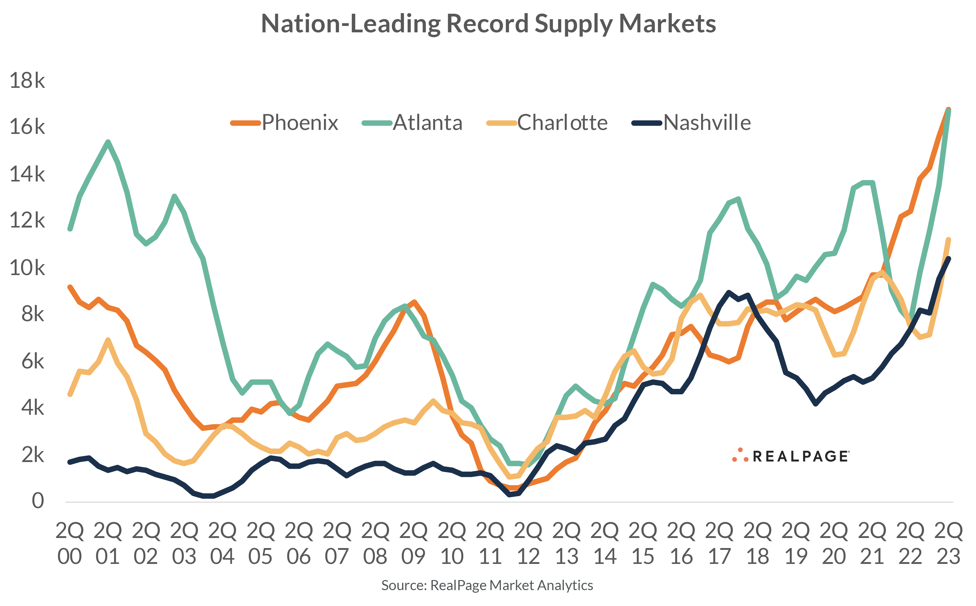 Nashville is the nation’s leader for apartment demand volumes, though absorption here has been unable to keep up with concurrent new supply.