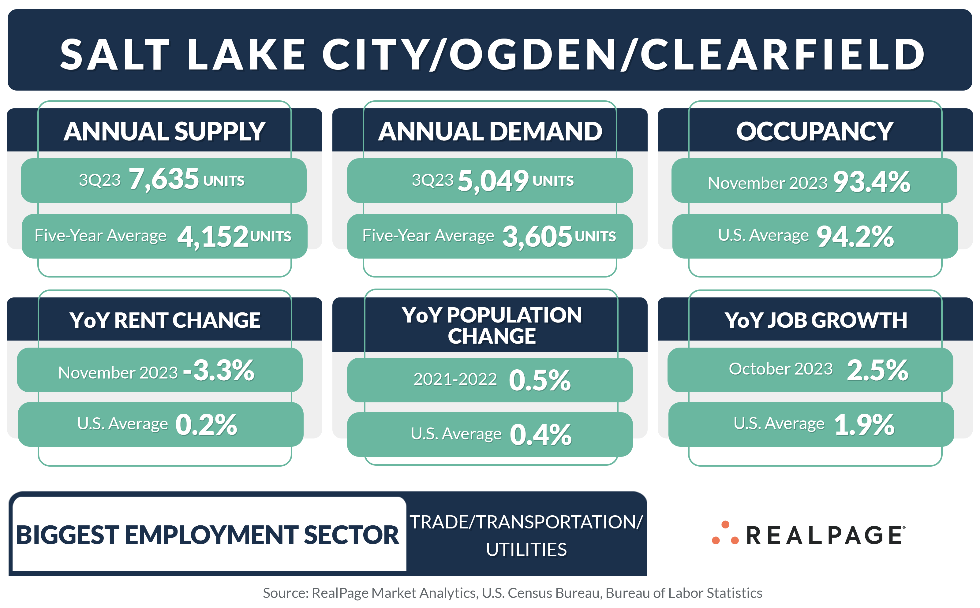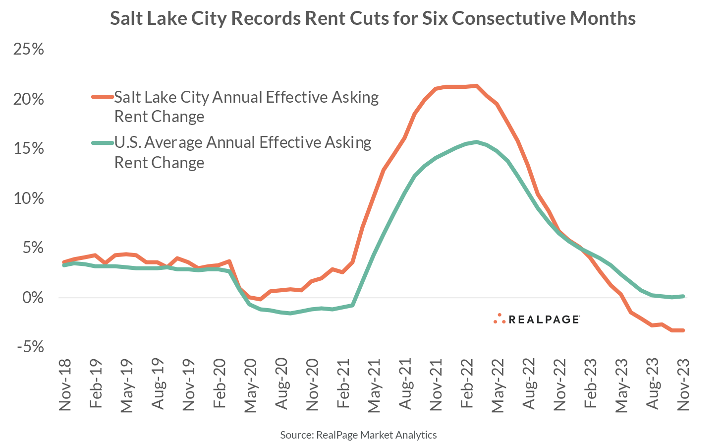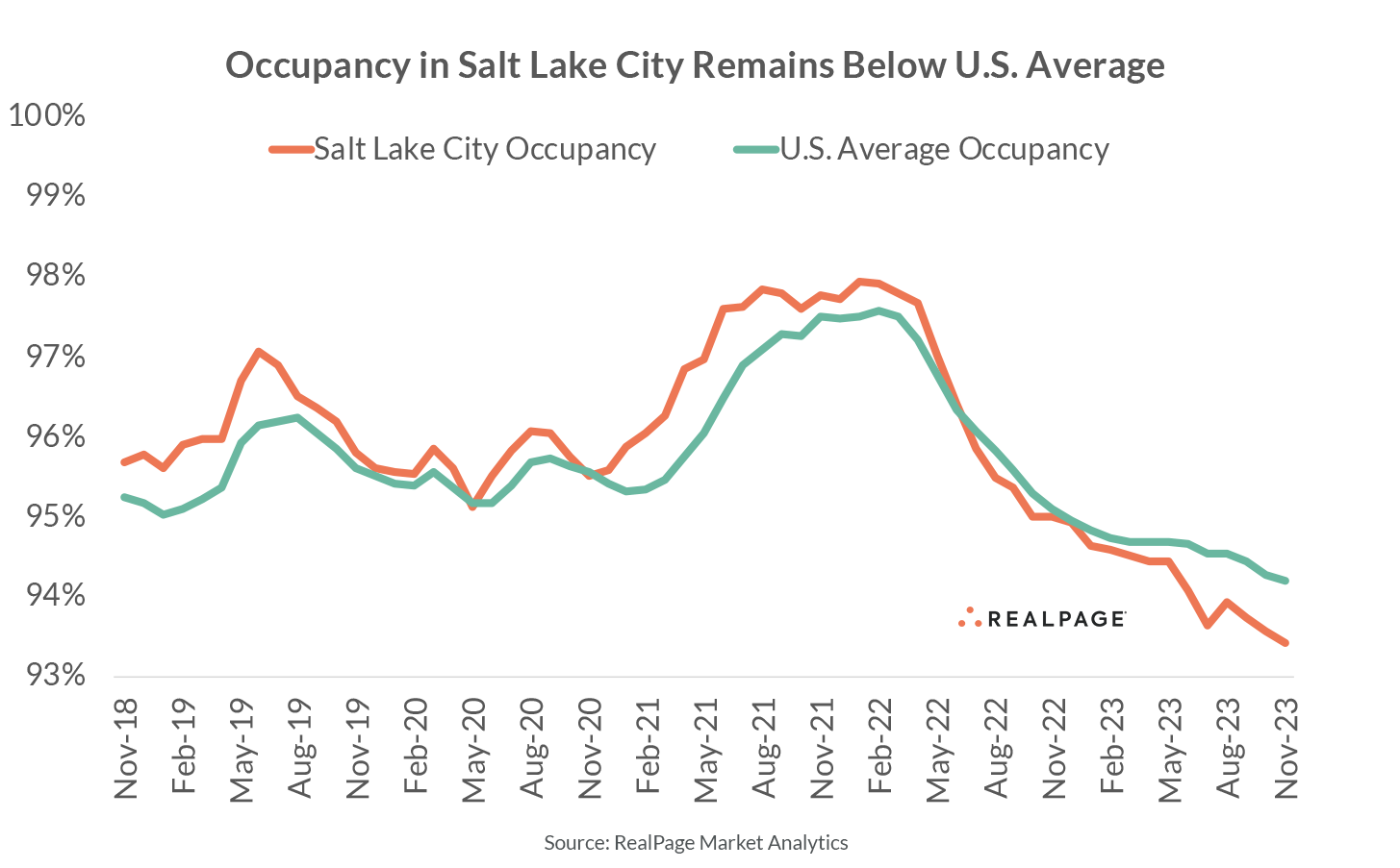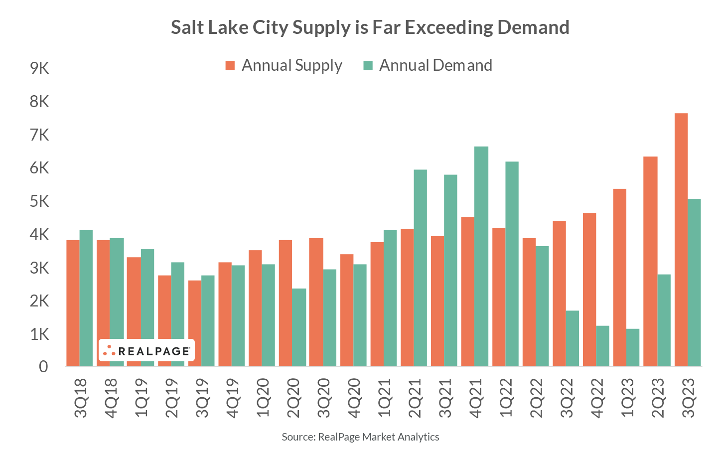 No other major apartment market in the U.S. added more units on a relative basis than Salt Lake City in the year-ending 3rd quarter 2023. And next year's supply wave will be even bigger. Although demand has been solid, it hasn’t been enough to keep pace with supply, pushing occupancy and rents down.