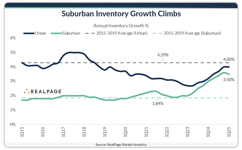 What stands out is how substantially suburban supply has increased over these past two years. Suburban inventory growth has traditionally averaged below 2% per year but that pace has almost doubled since early 2023.