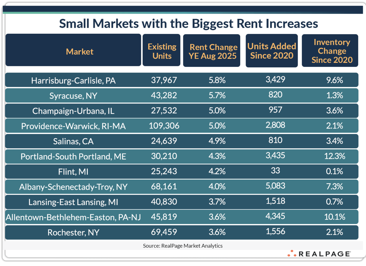 Insights Insights Small Apartment Markets with Big Rent Increases Charlotte Wheeler September 2, 2025