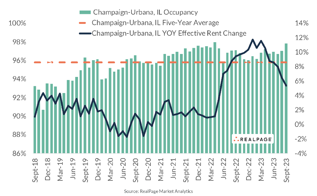Insights Insights Apartment Performance in Champaign-Urbana Bucks National Trend Carissa Brown October 18, 2023
