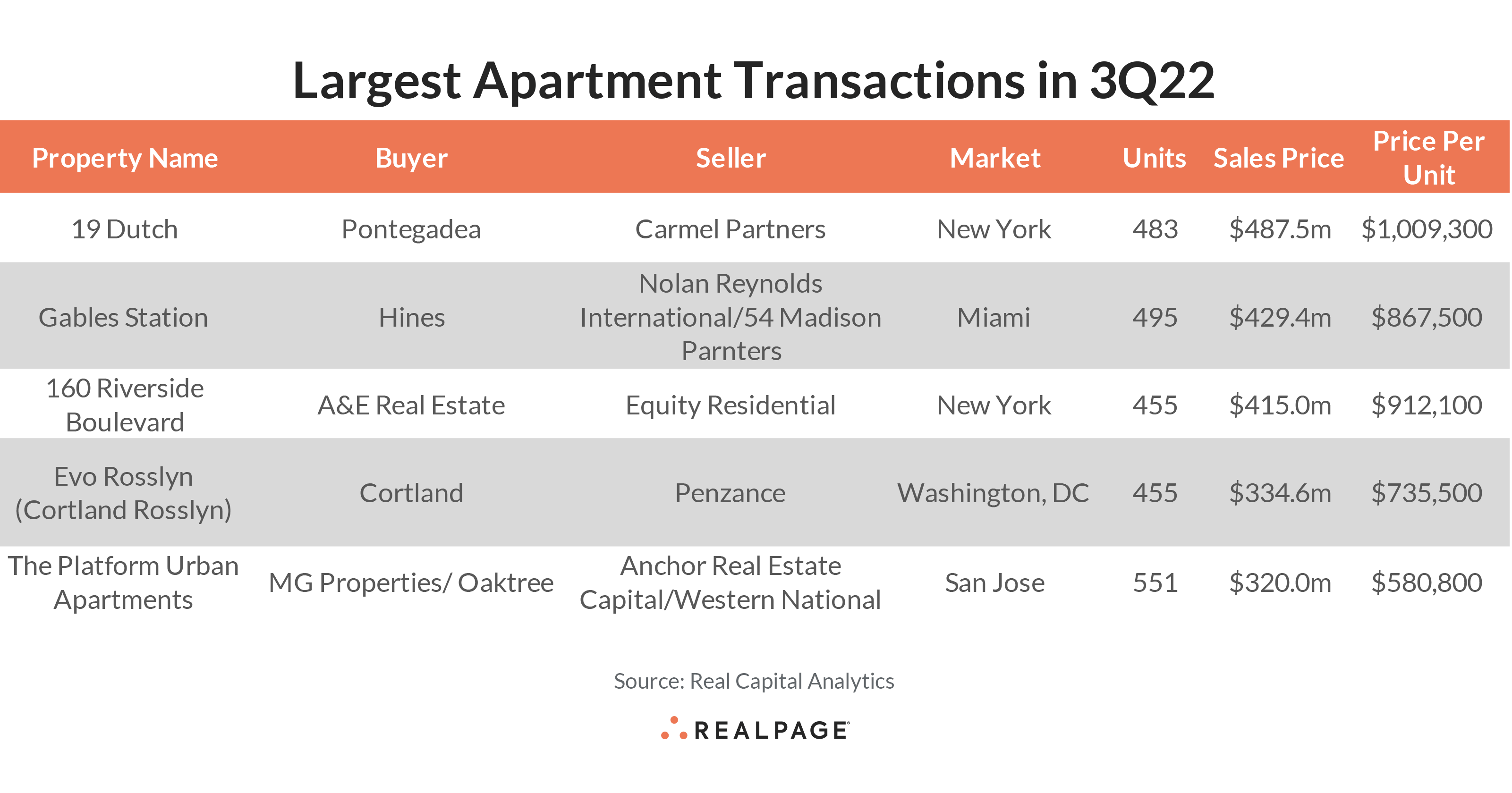 The Five Largest Apartment Transactions in 3rd Quarter 2022