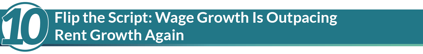 Beginning in November 2022, year-over-year U.S. wage growth topped effective apartment rent growth – a trend that has continued since. Parsons explained this wage growth misconception as well as methodology behind his math in a September blog post.
