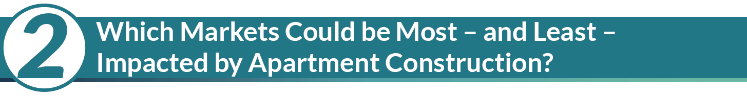 We’ve dissected the current apartment supply wave in a number of ways. In October, RealPage Chief Economist Jay Parsons considered apartment supply through the lens of how each market's current supply peak compared to its previous peaks over the last 20+ years, giving a useful benchmark for past absorption capacity.