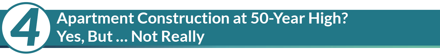 While it is technically true that the 1 million multifamily units under construction nationwide as of April marked a 50-year high, Parsons explains why that’s a misleading accolade. For starters, there are more than twice as many multifamily units nationwide than there were in the 1970s, not to mention there are nearly twice as many adults between the ages of 25 to 54 compared to back then.