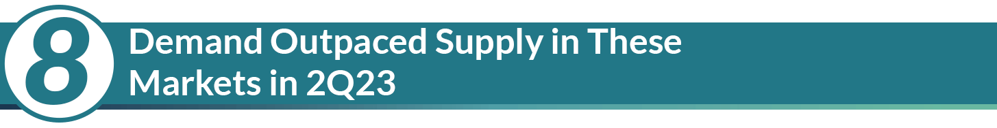 After 2nd quarter data released, it seemed apartment demand was all anyone could talk about (guilty). Although the nation at large absorbed about 83,000 units – failing to fully meet the concurrent 107,000 units that came online in 2nnd quarter, not every market experienced that supply and demand imbalance. Real Estate Writer Kim O’Brien examined the 14 apartment markets (among the nation’s 50 largest) where 2nd quarter 2023 absorption outpaced 2nd quarter 2023 supply.