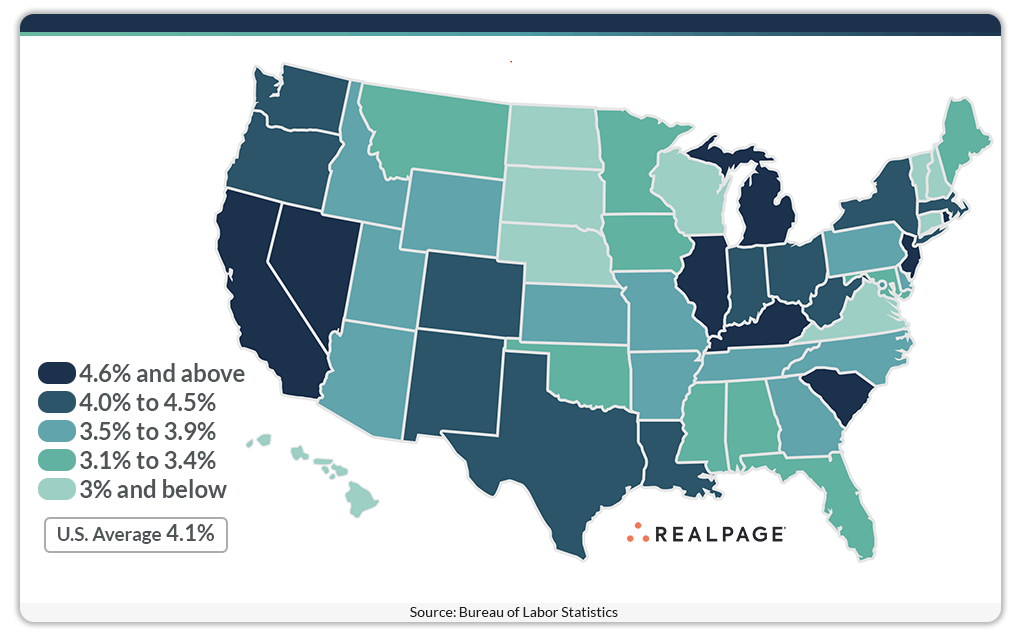 Unemployment rates among the nation’s 50 states varied widely, with a span of 380 basis points (bps) between the best and the worst as of December 2024. Twenty-nine states had jobless rate increases from a year earlier, 11 states had decreases and 10 states had little (less than 10 bps) or no change. Although unemployment for the nation overall has risen recently, rates have improved dramatically since reaching a peak during the COVID-19 pandemic of 14.8% in April 2020, which was the worst reading since the Great Depression. Most recently, the U.S. average unemployment rate rose 30 basis points year-over-year to 4.1% in December, according to seasonally adjusted data from the Bureau of Labor Statistics. Among U.S. states, the largest surge in unemployment from December 2023 to December 2024 was in South Carolina with the rate jumping 170 bps, while the deepest decline of 120 bps was in Connecticut. Sixteen states had December unemployment rates that exceeded the U.S. average by more than 10 bps, with Nevada and California posting the highest rates in December, at 5.7% and 5.5%, respectively. Thirty states had rates below the national norm. South Dakota recorded the lowest unemployment rate in December at 1.9%, with the second-lowest rate of 2.4% in Vermont. Four states, Massachusetts (4.1%), Oregon (4.1%), Texas (4.2%) and West Virginia (4.2%) matched or were within 10 bps of the U.S. average.
