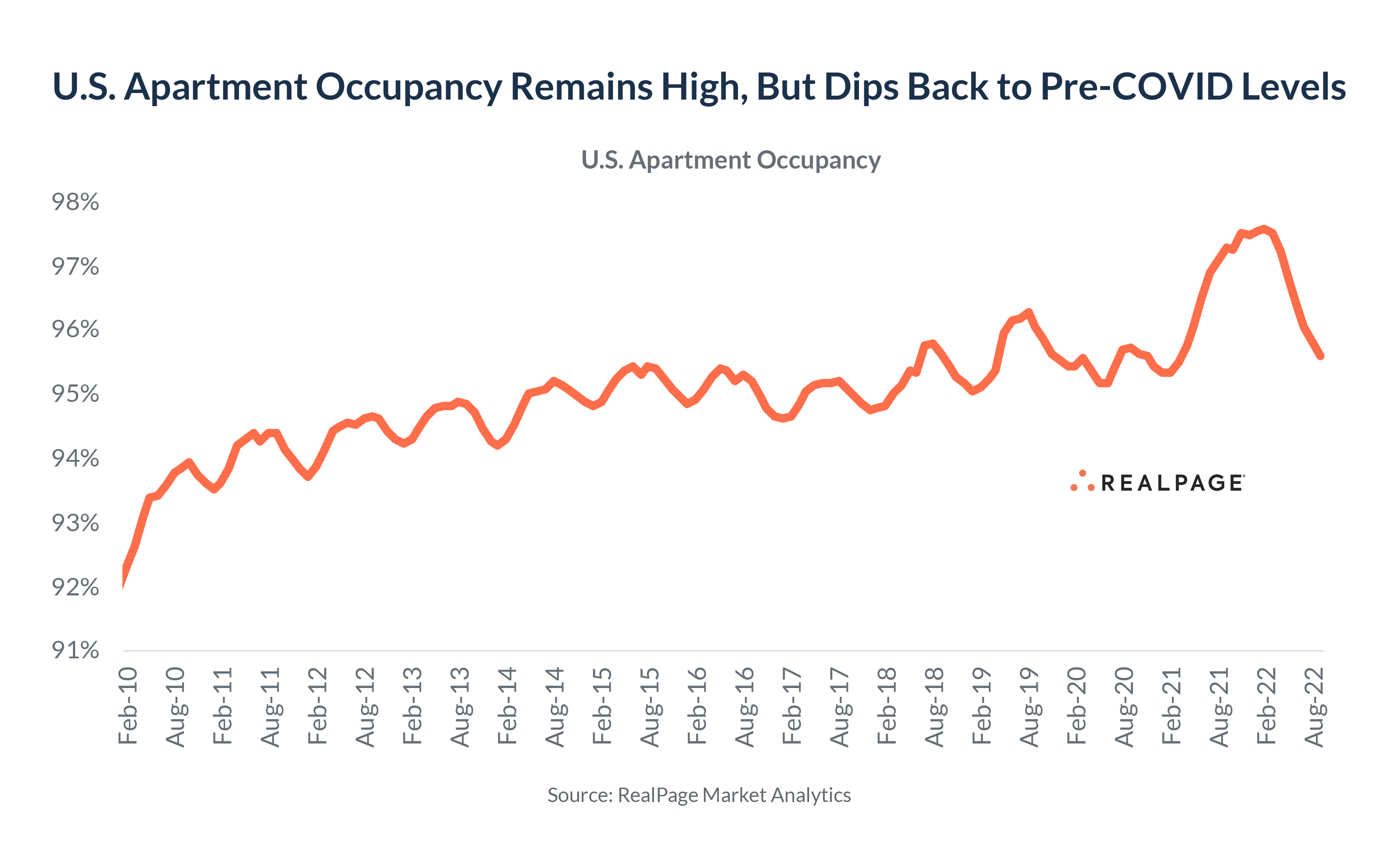 New renters filled up U.S. apartments at record levels in 2021 and early 2022. But in more recent months, apartment demand has unexpectedly evaporated in much of the country due to what appears to be a freeze in new household formation.