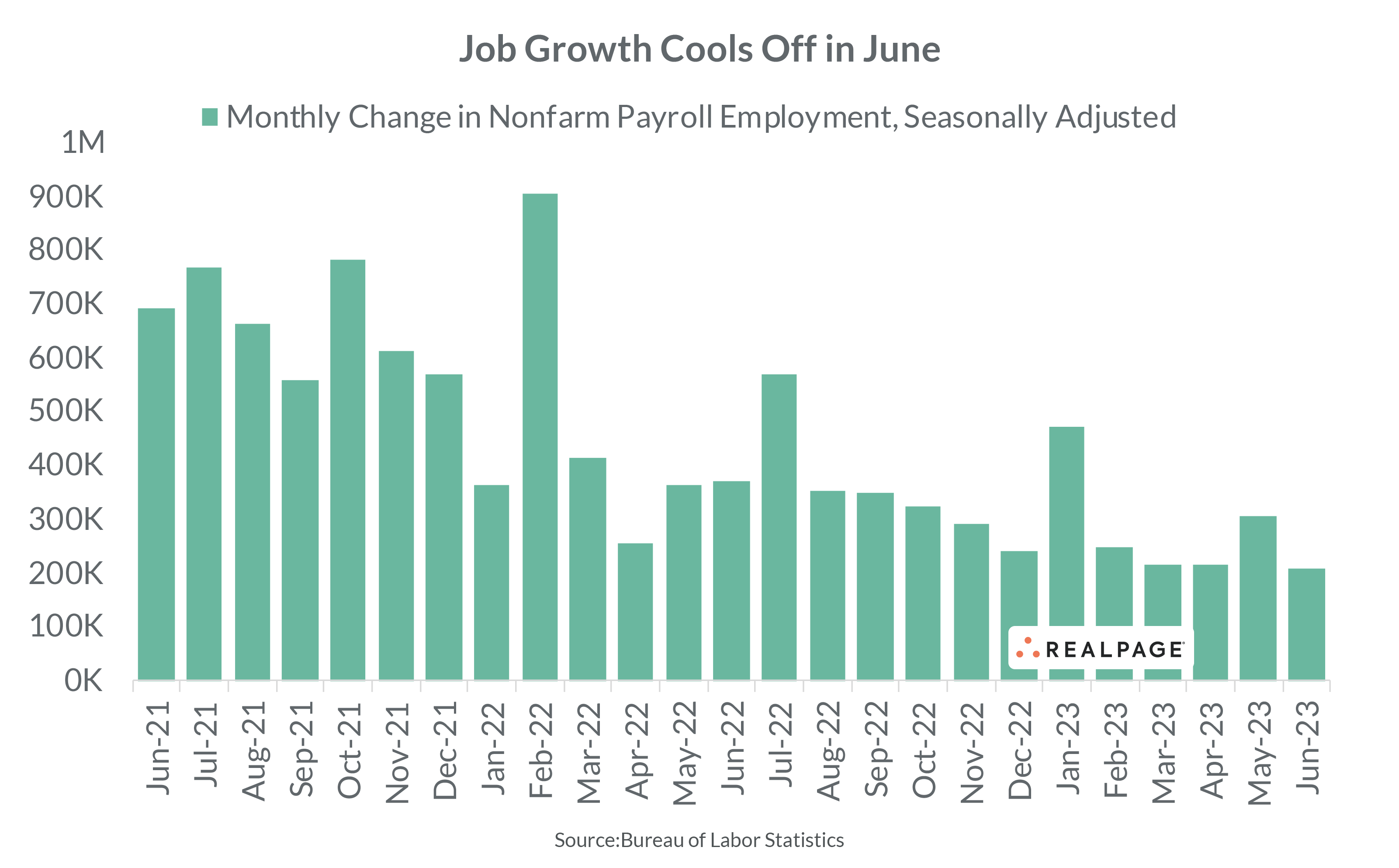 Employers added roughly 209,000 employees to payrolls in June 2023, according to the Bureau of Labor Statistics (BLS). That was the weakest month-over-month gain since December 2020 when the U.S. recorded a decline in jobs. In addition, the nation’s recent job additions came in short of economist’s projections (225,000 to 240,000 jobs) and well below May’s gain of 306,000 jobs.