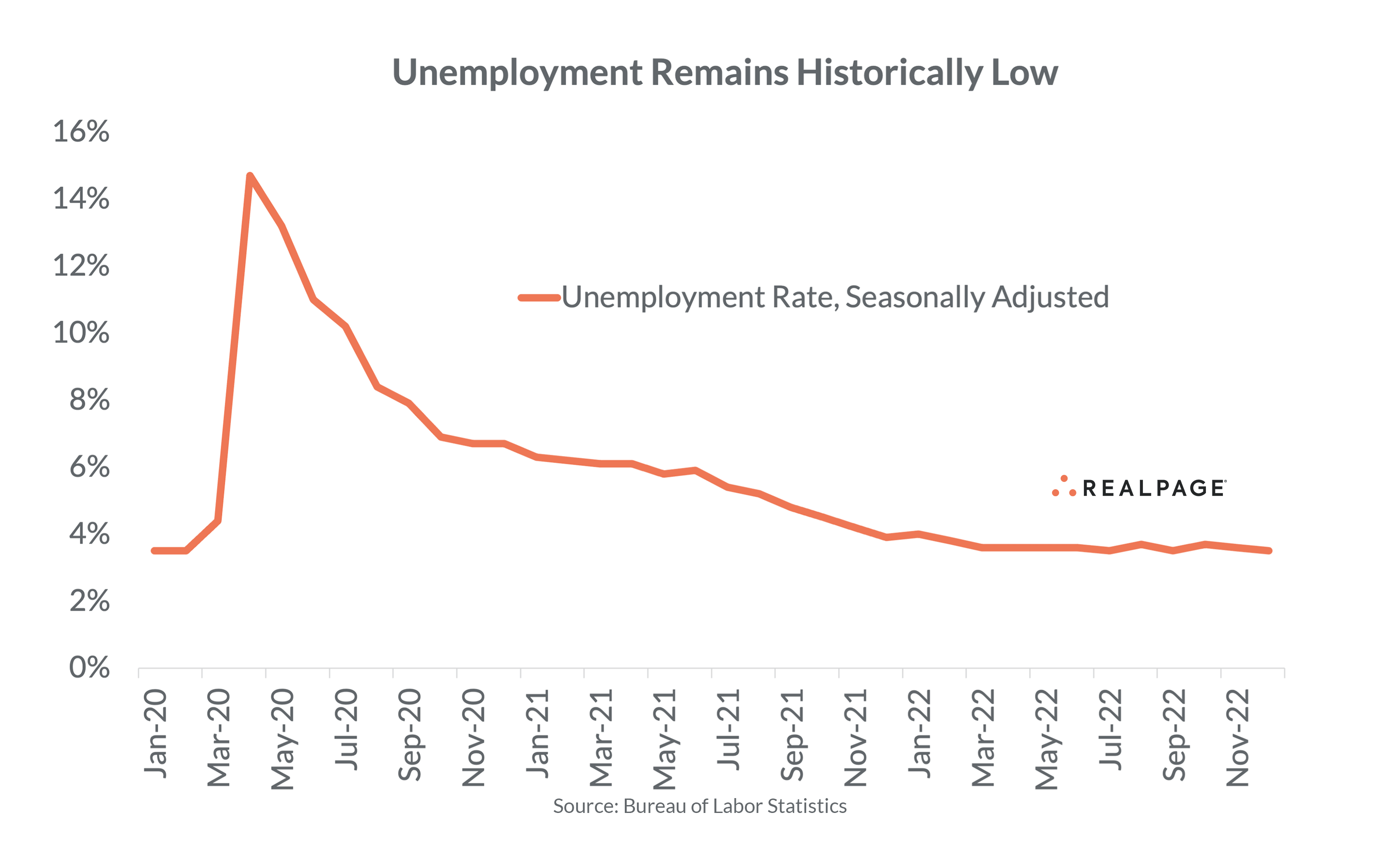The red-hot U.S. job market is showing signs of cooling amid rapidly rising interest rates. While U.S. job growth continued to ease in December, it remains strong by historical standards, registering well above pre-pandemic norms. In addition, the unemployment rate remains at record lows.