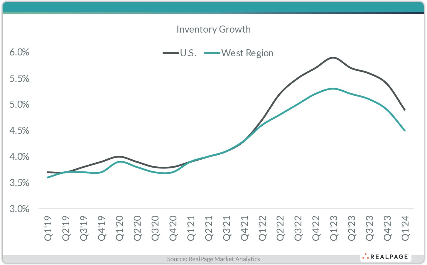 While apartment supply volumes hit a new record in many spots throughout the nation recently, the West region has seen more muted growth. Leading up to the COVID-19 pandemic, the U.S. and the West region were essentially matched in inventory growth rates, with both averaging just under the 4% mark. This equivalence changed in 2022, when new apartment deliveries ramped up nationwide, especially across the Sun Belt. While the West region also saw an increase in inventory growth at that time, the pace of the hike was not as extreme. Annual inventory growth peaked at 5.9% in the U.S. in 1st quarter 2023, while the concurrent peak for the West region was a bit softer at 5.3%. Both growth rates have come down since. In the year-ending 1st quarter 2024, the U.S. increase was 4.9%, while the West region growth was more muted – but still solid by historical terms – at 4.5%.