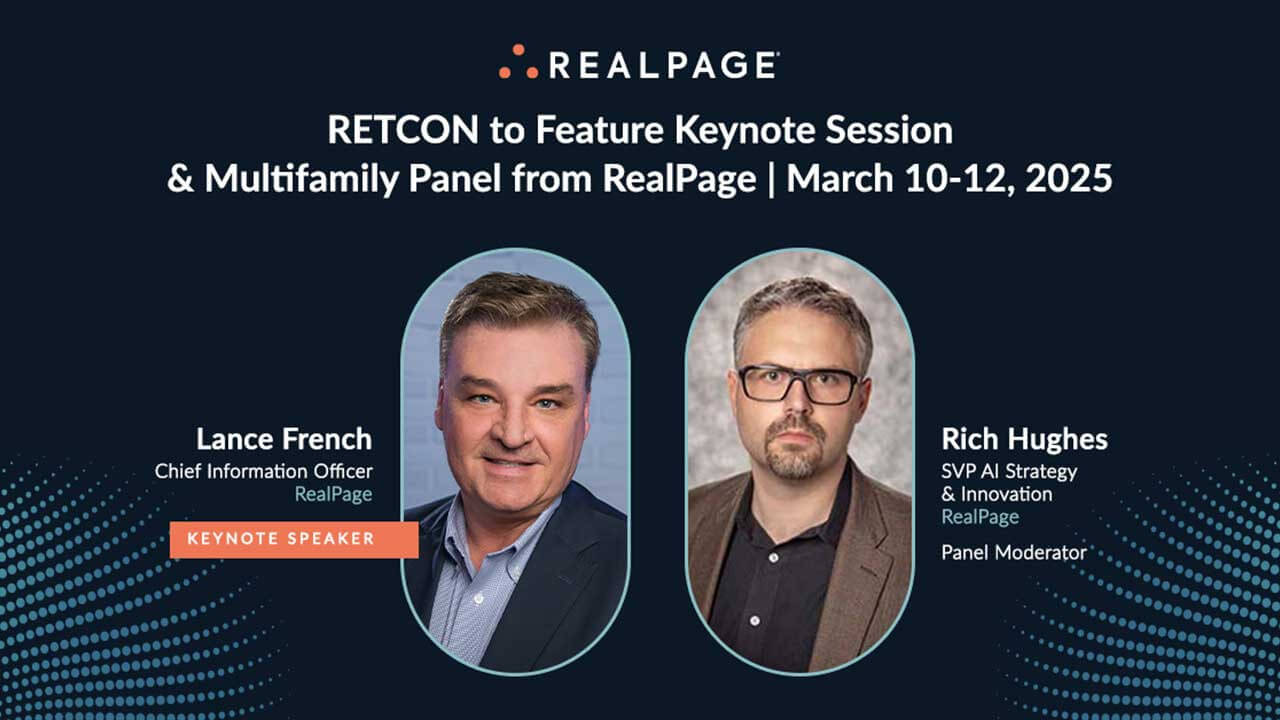 LAS VEGAS & RICHARDSON, Texas--(BUSINESS WIRE)--RealPage®, the leading global provider of AI-enabled software platforms to the real estate industry, announced today two executive presentations at RETCON 2025. Speakers will detail AI progress, strategies and opportunities for the real estate community and share insights following the introduction of Lumina™ AI across RealPage’s multifamily platform solutions. The AI leadership sessions will be presented by RealPage CIO Lance French in Tuesday’s visionary keynote and by SVP AI Strategy and Innovation Rich Hughes in Wednesday’s multifamily strategy panel.